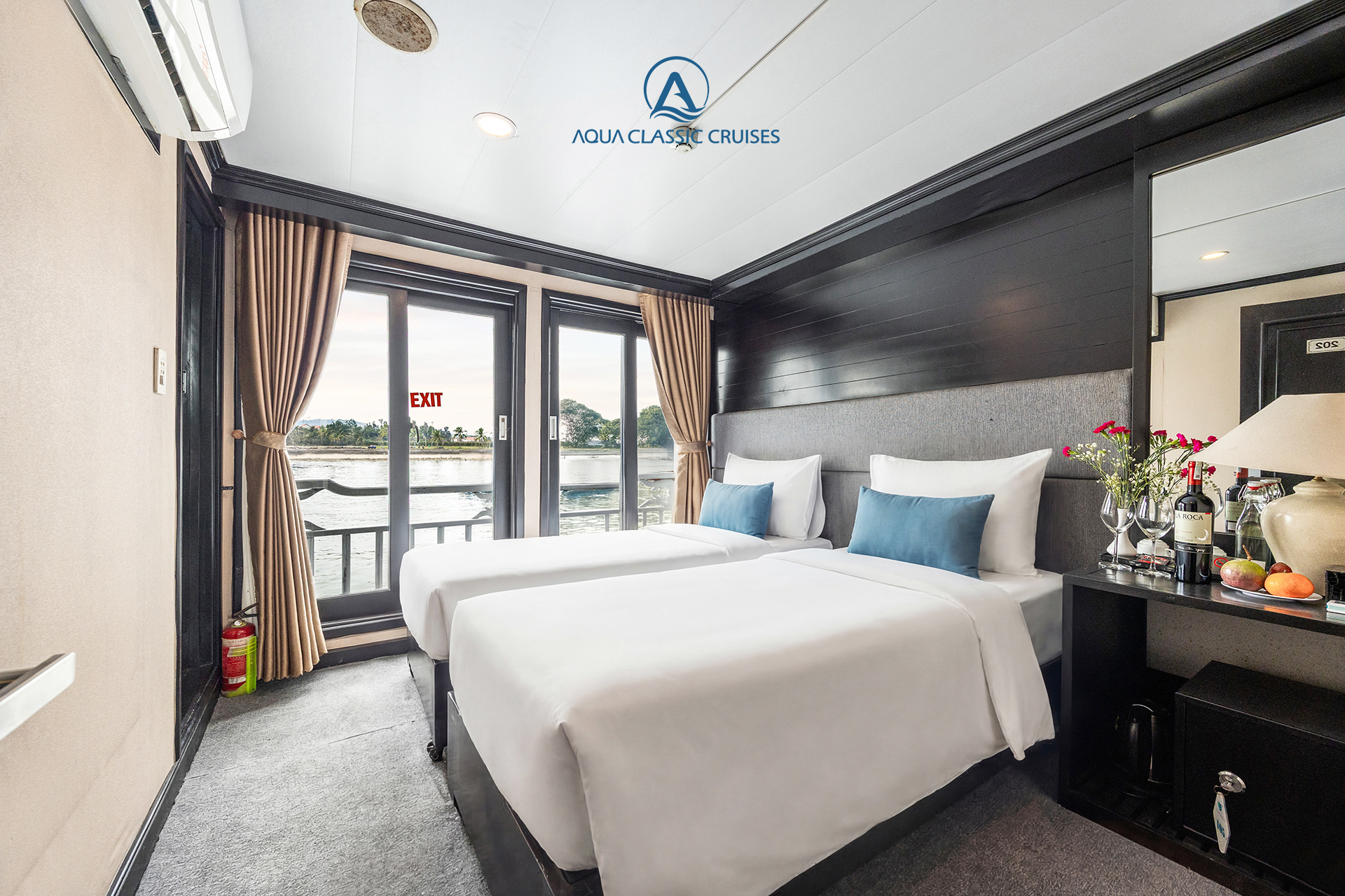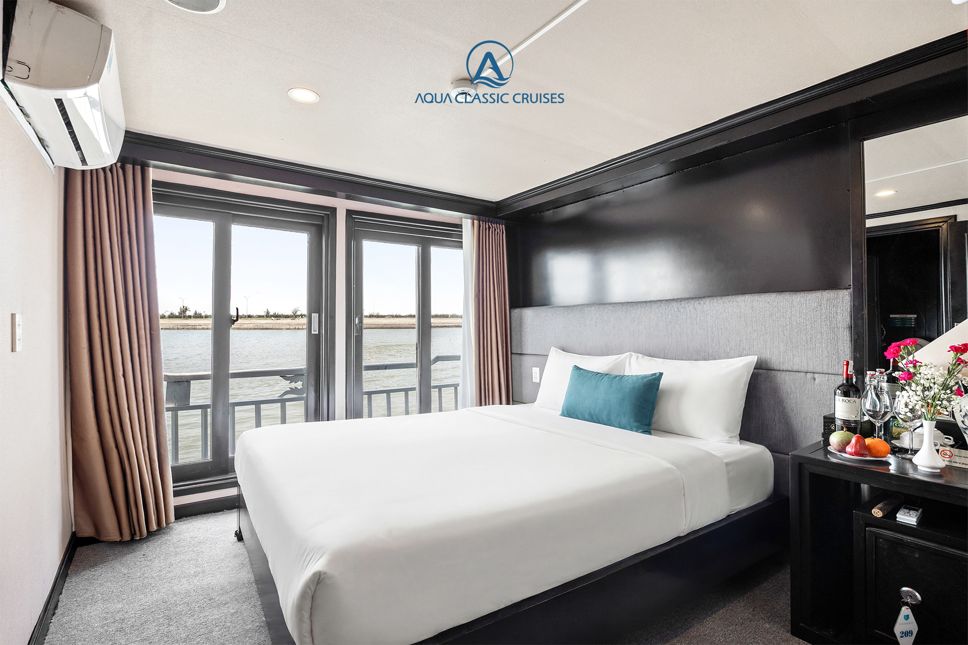 Phòng Deluxe trên du thuyền Aqua Classic tọa lạc tại tầng 2, gồm 9 cabin, với diện tích 20 m². Không gian phòng được thiết kế hiện đại, trang nhã và rộng rãi, mang đến cảm giác thoải mái và thư giãn. Phòng được trang bị đầy đủ tiện nghi cao cấp, là lựa chọn lý tưởng cho du khách mong muốn trải nghiệm nghỉ dưỡng tinh tế trong suốt hành trình khám phá Vịnh Hạ Long.
