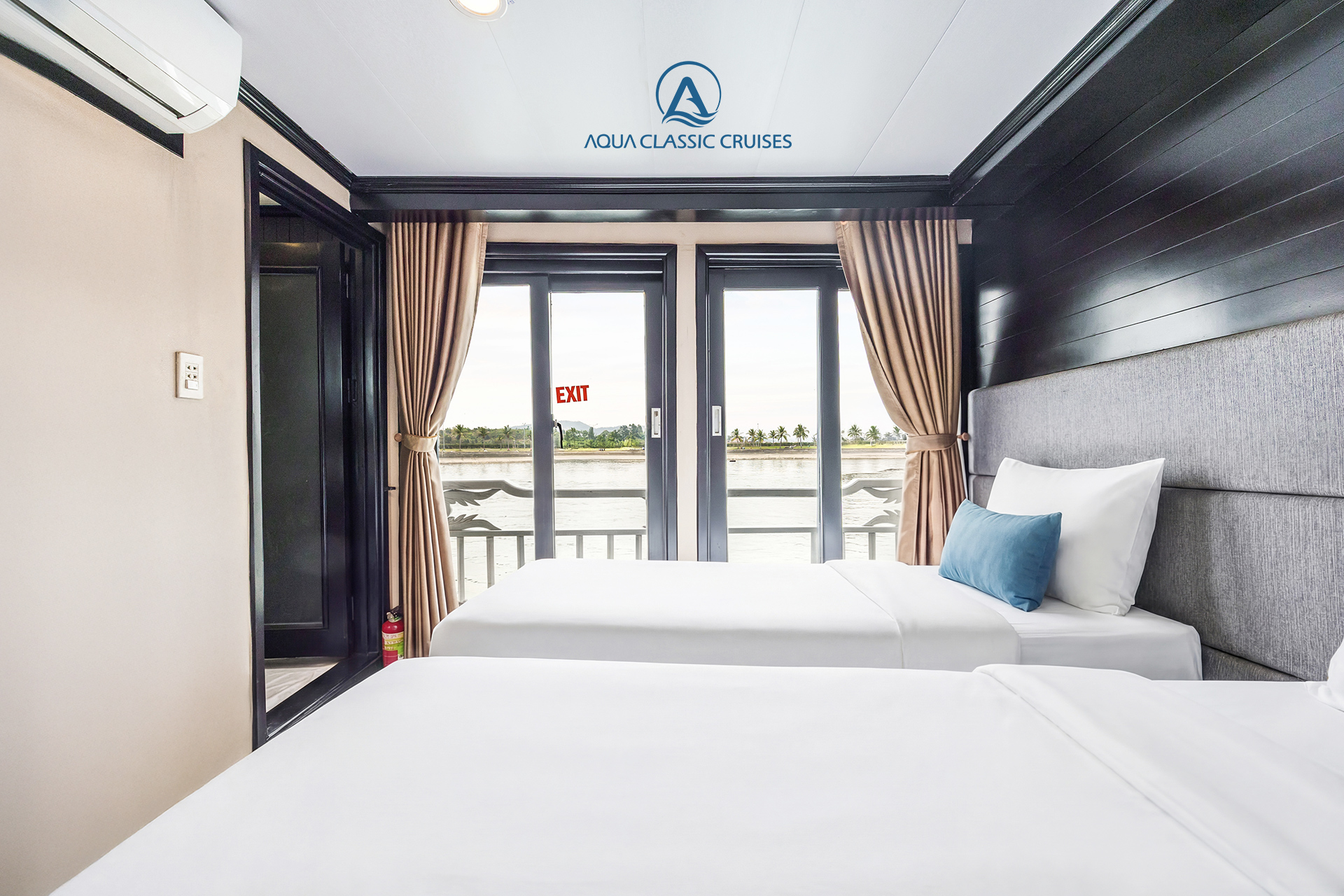 Phòng Family Suite trên du thuyền Aqua Classic tọa lạc tại tầng 2, là hạng phòng đặc biệt gồm 2 phòng ngủ và 1 phòng vệ sinh, diện tích 40 m².